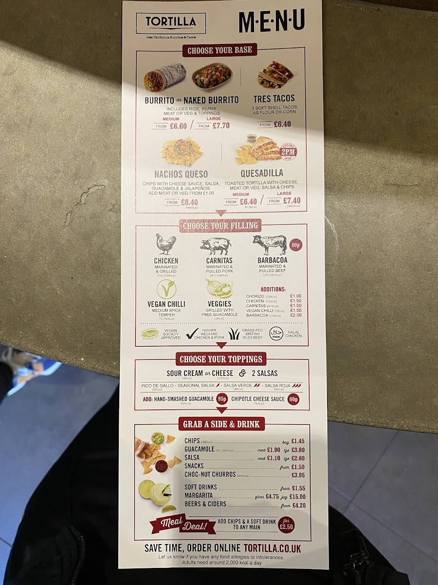 Welcome to Tortilla Liverpool, a vibrant spot located at 70 Lord St, Liverpool, where the love for fresh, flavorful food shines. At Tortilla, you can dive into a diverse menu designed to satisfy every palate. Choose from hearty options like the Medium and Large Burritos, which come with your selection of fillings for prices starting at just £7.00. If you're craving something lighter, consider the popular Tres Tacos or a cheesy Quesadilla.